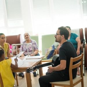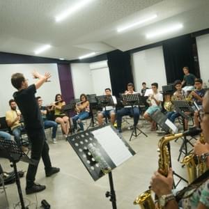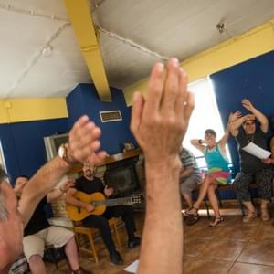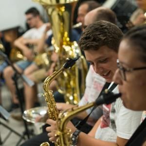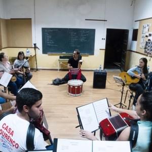 Sessões de preparação com a comunidade participante no evento final, em interação com músicos e coletividades da região.